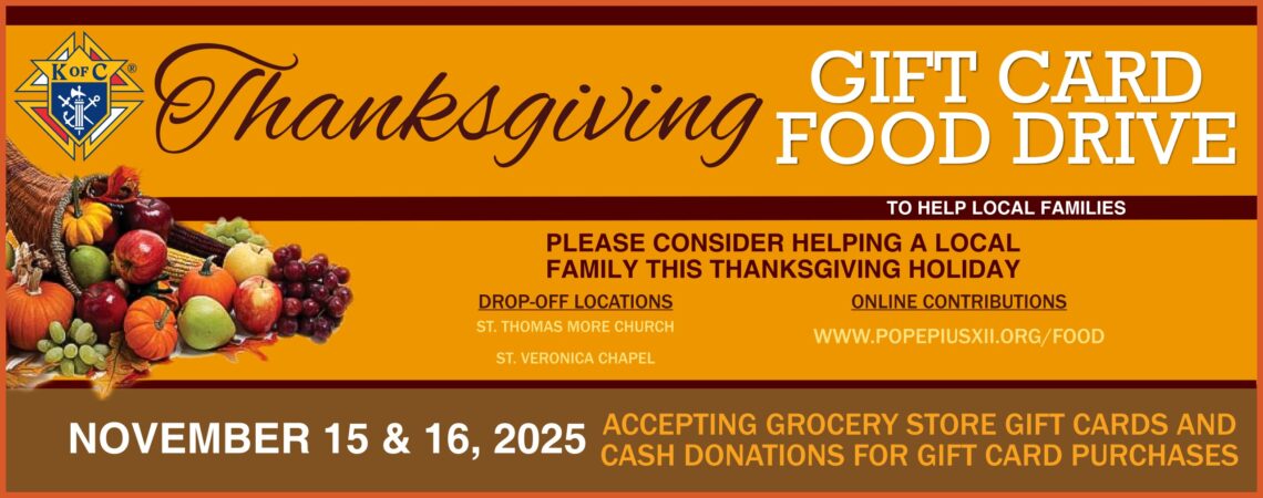 HELP A LOCAL FAMILY THIS THANKSGIVING HOLIDAY On November 15th and 16th, 2025, the Knights of Columbus are collecting grocery…